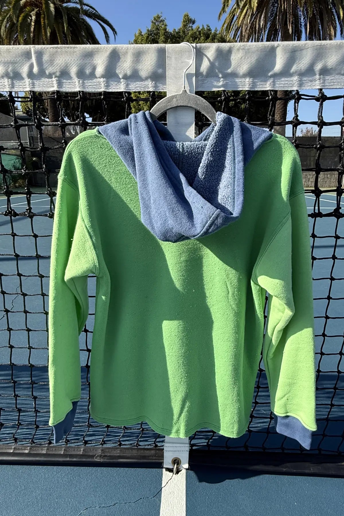 We love playing tennis in our home city of Santa Monica. These hoodies are inspired by the greens and blues of the Santa Monica public courts. We made them with a premium fleece cotton blend, and they came out deliciously soft. We love the retro color blocking, reminiscent of the 1980's/90's styles. There is a bit of pilling from the wash, but that just adds to their vintage/retro look we think!