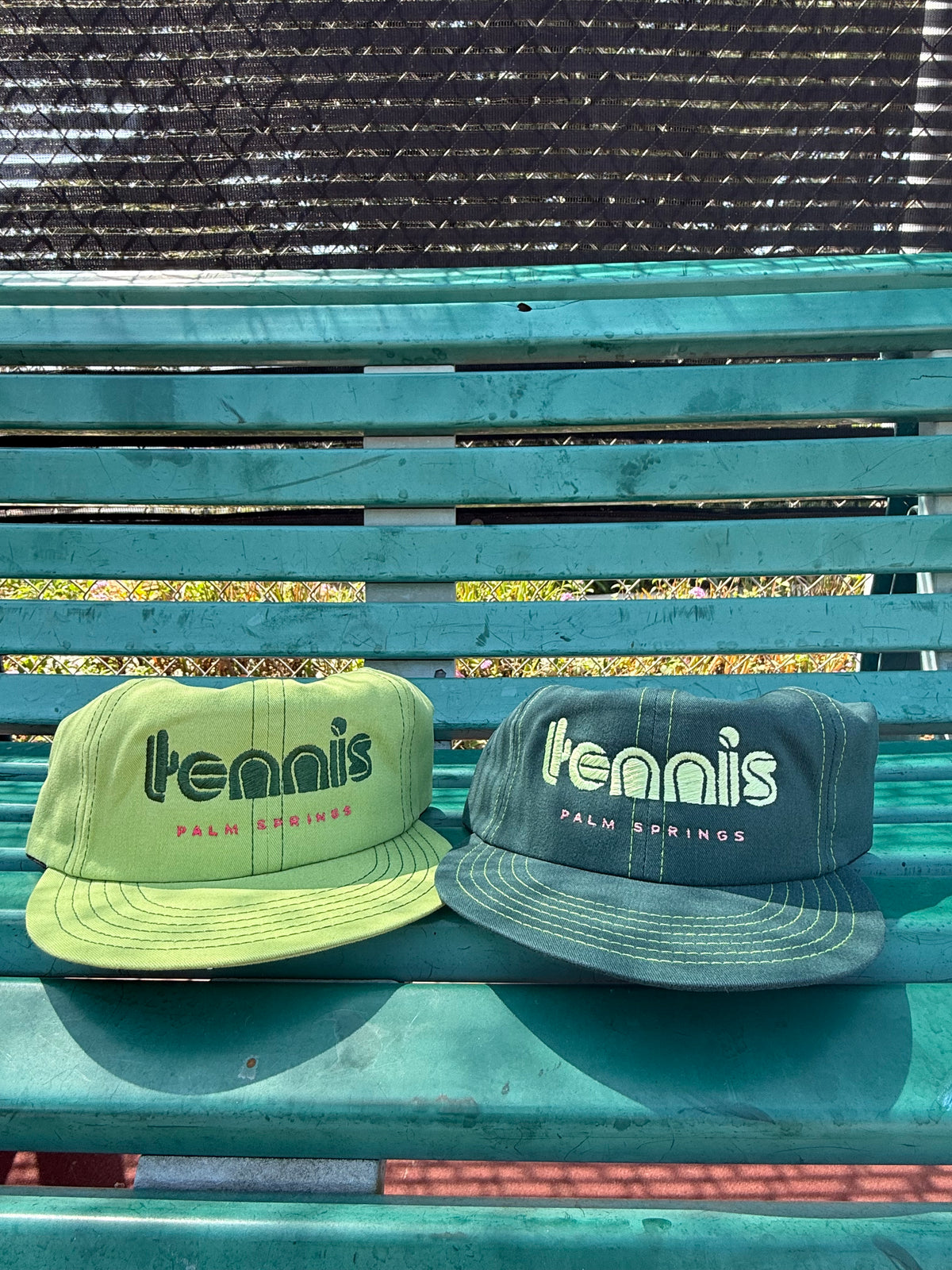 Our love for tennis in the desert just got deeper! We made these hats from scratch in a small hat factory in Los Angeles. They are very stylish, lightweight with adjustable strap backs. More photos coming soon!