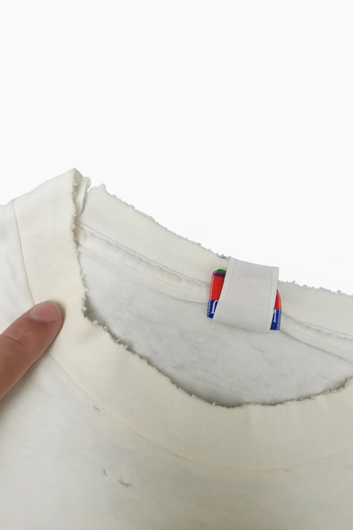 This tee is dope! There is a tear on the right side towards the bottom of the graphic, but hey, that's just tennis rock n' roll baby!