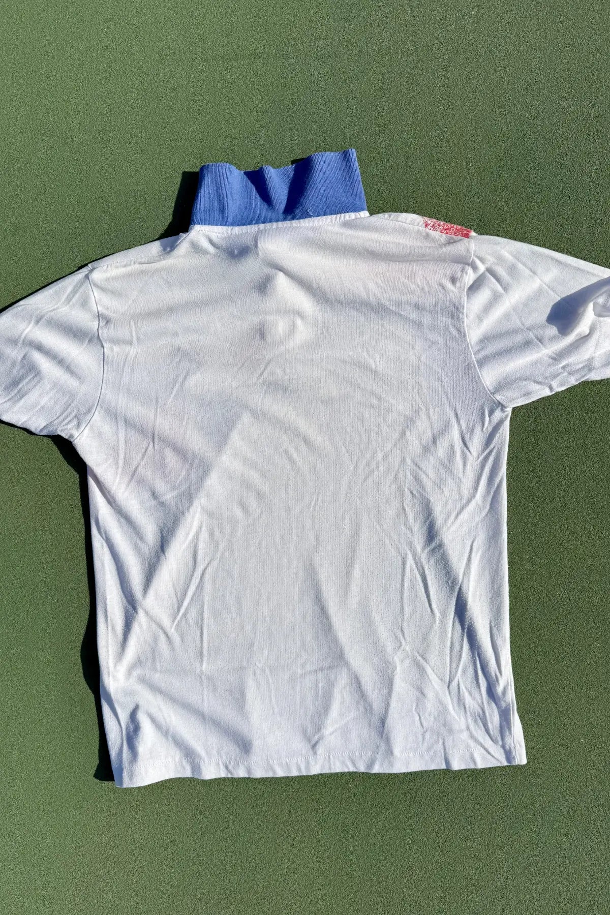 Slazenger is legend. Founded in Britain in 1881, Slazenger has been the main sponsor of Wimbledon and has designed some absolutely epic tennis apparel and equipment through the decades. We rescued this delicious, circle 1990's polo at a flea market. She's in great condition, super soft and ready to be worn n' adorn.