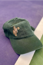 November 2025 Update: We just embroidered a fresh batch of these on some really nice olive green cotton dad hats with a beige thread. (First Photo)